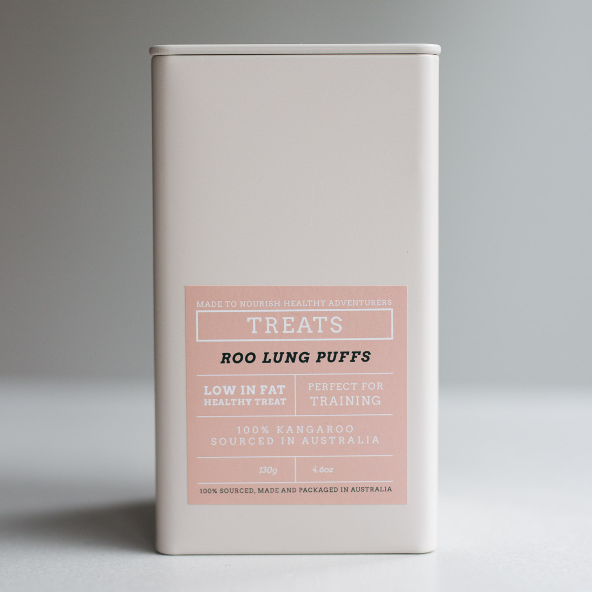 Our Larger Starter Tin is 150mm in height, making it the perfect option for our larger sized treats, like our Kangaroo Tail & Dental Sticks.
